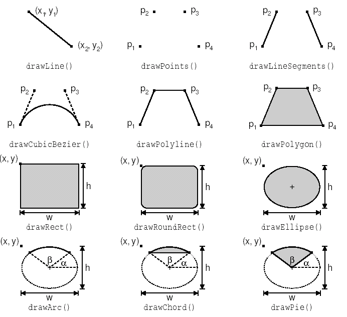 Рисунок 8.1. Методы класса QPainter, для рисования геометрических фигур.
