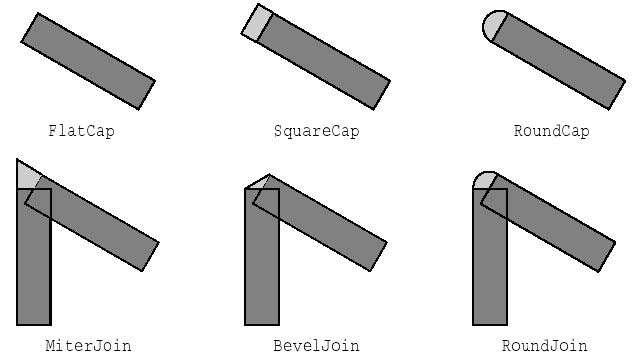Рисунок 8.3. Стили оформления концов линий и углов.