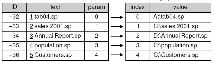 Рисунок 3.12. Соответствие между пунктами меню и полными именами файлов.
