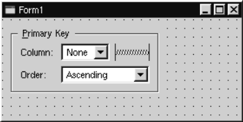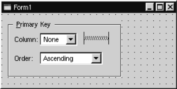 Запишите в свойство title, GroupBox-а, строку "&Primary Key". В свойство text первой метки -- "Column:", второй метки -- "Order:".
