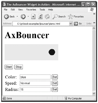из подкаталога extensions\activeqt\control.На этом мы завершаем краткий обзор ActiveQt framework. Дистрибутив библиотеки Qt включает в себя ряд дополнительных примеров, которые содержат сведения о модулях QAxContainer и QAxServer и решения наиболее общих проблем совместимости.