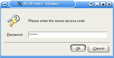 kdialog --title "ACAP entry" --password "Please enter the server access code:" |