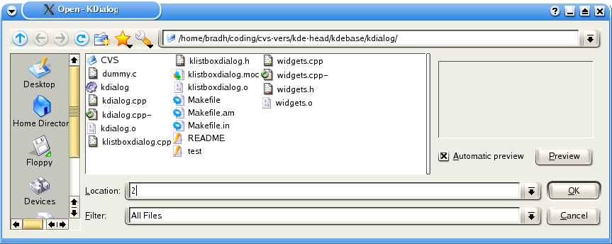 [bradh@rachel kdialog]$ kdialog --getopenfilename . /home/bradh/coding/cvs-vers/kde-head/kdebase/kdialog/Makefile.am [bradh@rachel kdialog]$ kdialog --getopenurl . file:/home/bradh/coding/cvs-vers/kde-head/kdebase/kdialog/Makefile.am |