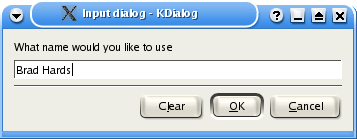 kdialog --title "Input dialog" --inputbox "What name would you like to use" |