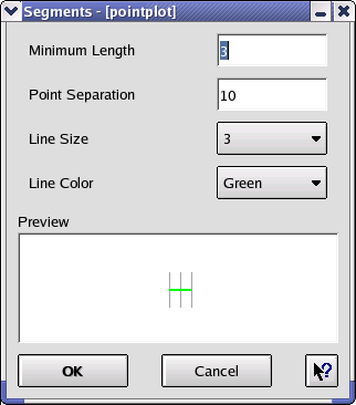 A line in the processed image is a candidate for segment fill if it is longer than the specified minimum segment length. Clicking on that segment will then cause points to be created along that line, separated by the specified point separation.