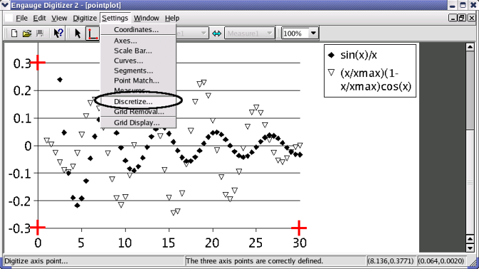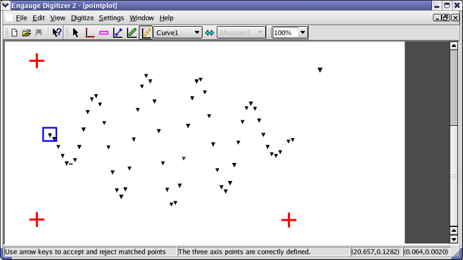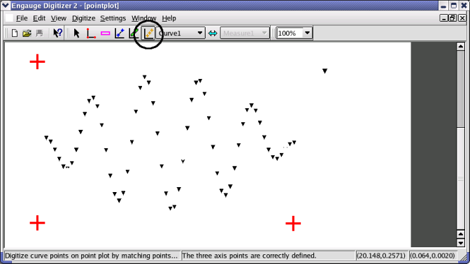 Engauge Digitizer - Automatic Point Graph Tutorial| Warning: Not all point graphs work well when automatically matching points in Engauge. Before going any further, you may want to read about point match requirements. |