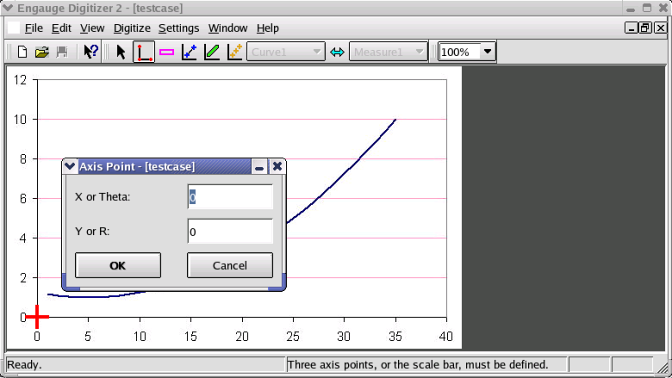 The following steps automatically digitize a linear cartesian graph with