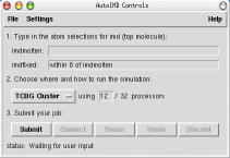 AutoIMD is a means of quickly starting a NAMD molecular dynamics simulations from atomic coordinates in VMD. The simulation can then be visualized in real-time on the VMD graphics screen. With the appropriate devices (such as a VRPN tracker), the user can also interact with a running simulation and apply forces to individual atoms or residues. Such an interaction is extremely useful when building and modeling systems, and can also be used to gain precious insights by tinkering with key residues and atoms.