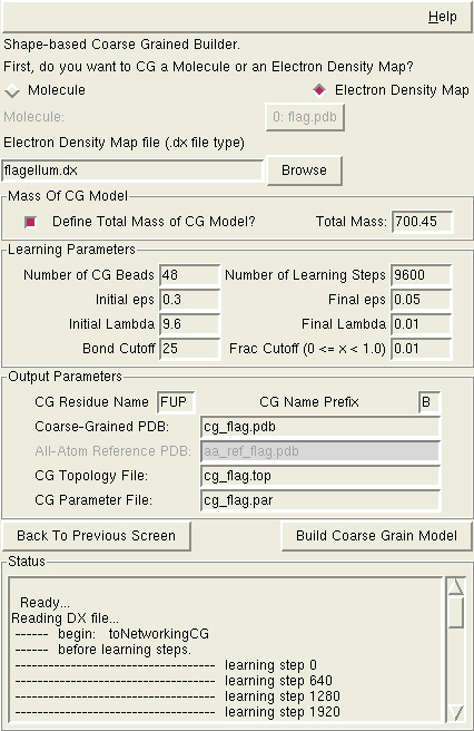 When starting with an electron density map, being able to specify the total mass of the CG model is much more useful, though. After calculating the location of each CG bead and how much of the density maps that is being represented by each bead, the algorithm will take the total mass value that you have provided and scale each CG bead accordingly.