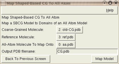 Output PDB Filename: Desired filename for newly mapped CG molecule.