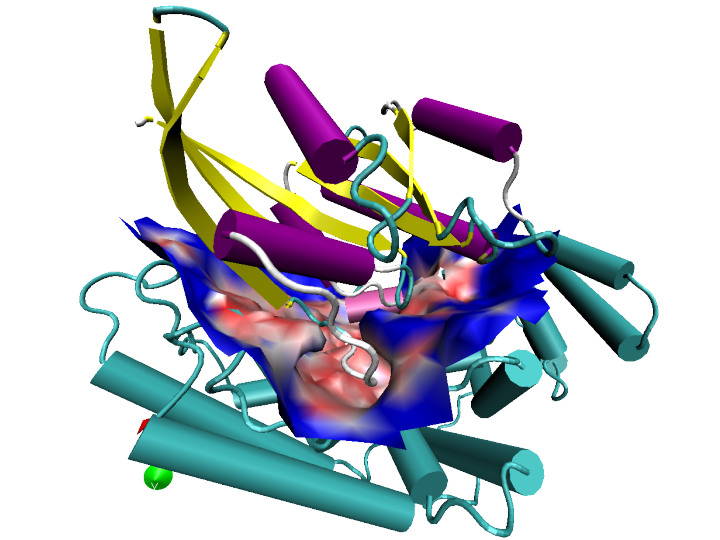 This plugin provides surfaces representing the interaction between two groups of atoms. Colors can be added to represent interaction forces between these groups of atoms. The method works as follow:
