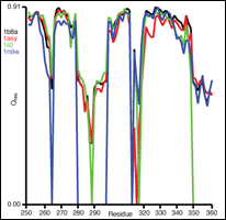 Plot Data Measures on a per residue basis with the built-in plotter.