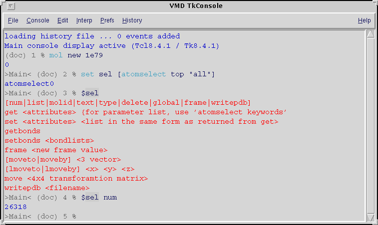 standard VMD text console with numerous additional features.