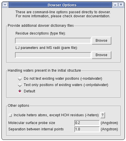 For a description of the other options, please refer to the Dowser manual.